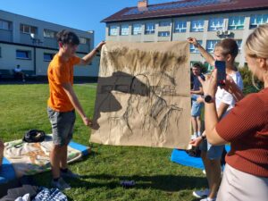 Korzystając z pięknej wrześniowej pogody i ostatnich dni lata, klasy 4i i 4l wzięły udział w niecodziennej lekcji języka polskiego pod kierunkiem p. Katarzyny Maksymiuk i p. Eweliny Wieczorek. Zajęcia miały formę śniadania literackiego, zorganizowanego na dziedzińcu szkolnym. Uczniowie czytali wiersze Kazimierza Przerwy-Tetmajera, Jana Kasprowicza i Leopolda Staffa, analizowali je, a następnie interpretowali, dokonując przekładu intersemiotycznego. Efektem pracy w grupach były plakaty, które wspólnie omówiliśmy.
