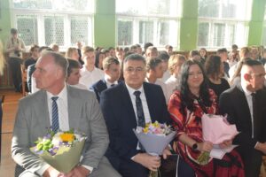 13 października uroczyście obchodziliśmy w naszej szkole Dzień Edukacji Narodowej. Jest to święto wszystkich pracowników oświaty, ale również uczniów i ich rodziców, czyli wszystkich, którzy tworzą społeczność szkolną. Tego dnia gościliśmy w naszej placówce Starostę Bialskiego Pana Mariusza Filipiuka, Wicestarostę Bialskiego Pana Artura Grzyba, Kierownik Referatu Oświaty, Kultury i Zdrowia, Panią Małgorzatę Kadłubowską. Pan Starosta złożył serdeczne życzenia nauczycielom i pracownikom Zespołu Szkół Ekonomicznych, a także wręczył stypendia uczniom, którzy w ubiegłym roku szkolnym uzyskali najwyższe wyniki. Ten dzień to również okazja do przyznania Nagród Starosty Bialskiego i Nagród Dyrektora Szkoły dla wyróżniających się nauczycieli. O oprawę artystyczną uroczystości zadbała klasa 4e pod kierunkiem p. Pauliny Lesisz. Klasę czwartą wspomogły swoimi talentami muzycznymi Dominika Bułhak z kl. 4p i Ewelina Chomicka z kl. 4a.