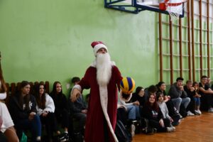 Mikołajki to nie tylko prezenty, ale przede wszystkim okazja do wspólnej zabawy. Jak co roku w naszej szkole odbył się mikołajkowy mecz piłki siatkowej, w którym uczniowie rywalizowali z nauczycielami. Rozgrywka wywołała wiele emocji, obie drużyny dawały z siebie wszystko i i zwycięstwo żadnej z ekip do końca nie było oczywiste. Ostateczny wynik 3:2 dla nauczycieli traktujemy z lekkim przymrużeniem oka😉