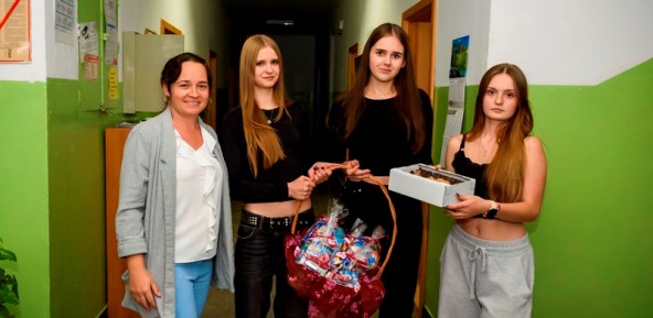 Dziewczęta złożyły życzenia dla chłopców oraz wręczyły słodkie prezenty z niespodzianką w środku.