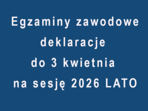 Przypominamy,że w przypadku ponownego przystępowania do egzaminu przez zdających, którzy nie zdali tego egzaminu w sesji 2026 ZIMA, termin składania deklaracji do sesji 2026 LATO upływa 3 kwietnia 2026 r.