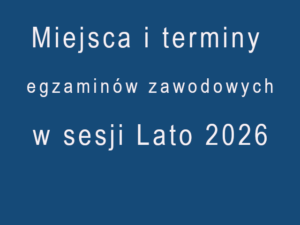 Miejsca i terminy egzaminów zawodowych zaplanowanych w naszej szkole w sesji Lato 2026 można sprawdzić pod linkiem Egzaminy w sesji Lato 2026