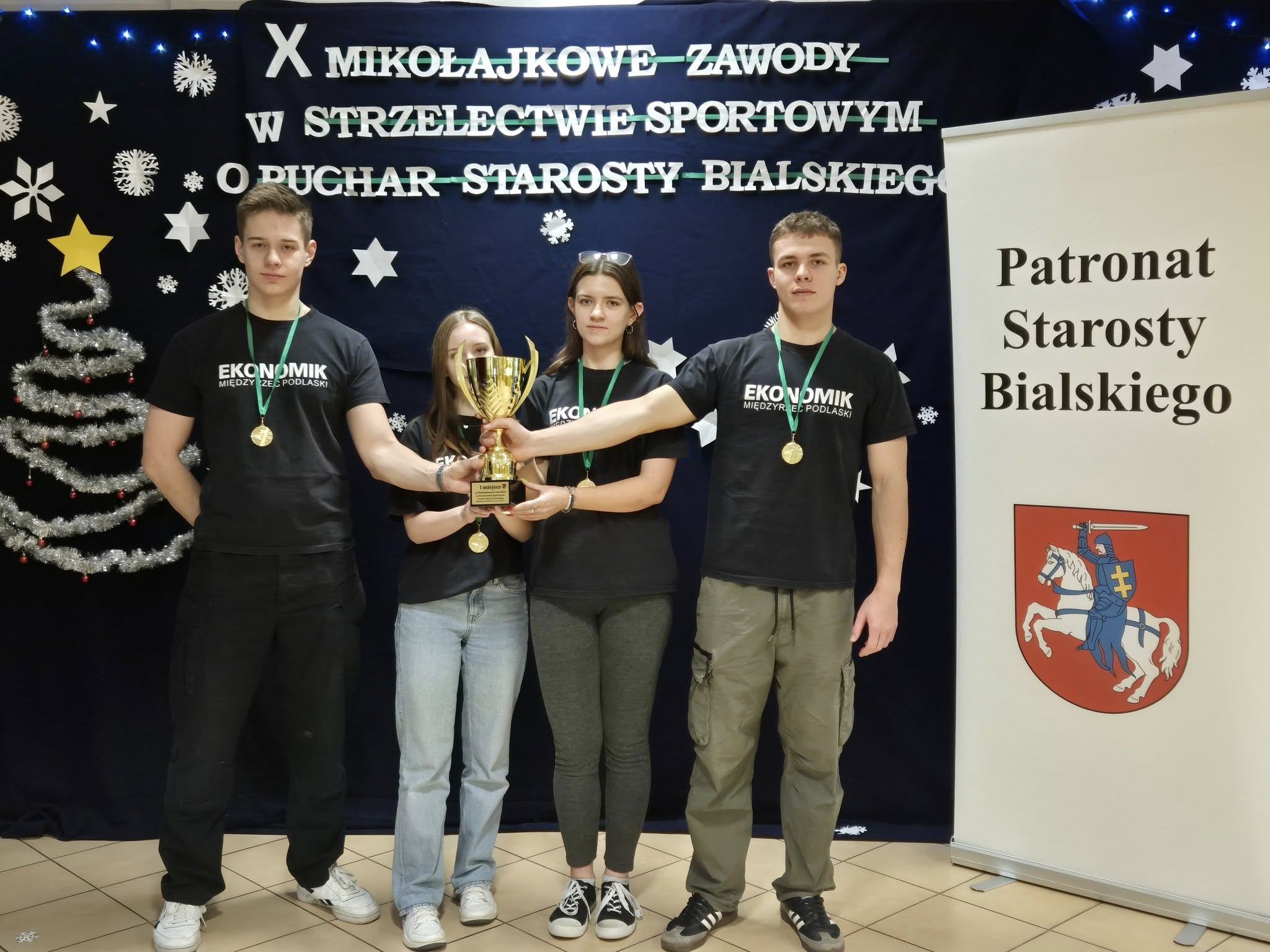 4 grudnia 2025r. w Zespole Szkół Ekonomicznych im. M. Dąbrowskiej przeprowadzono X Mikołajkowe Zawody Strzeleckie pod honorowym patronatem Starosty Bialskiego Pana Mariusza Filipiuka. Dziesiąta odsłona turnieju zobowiązywała. Tu nie było miejsca na przypadek, tylko celne 10!