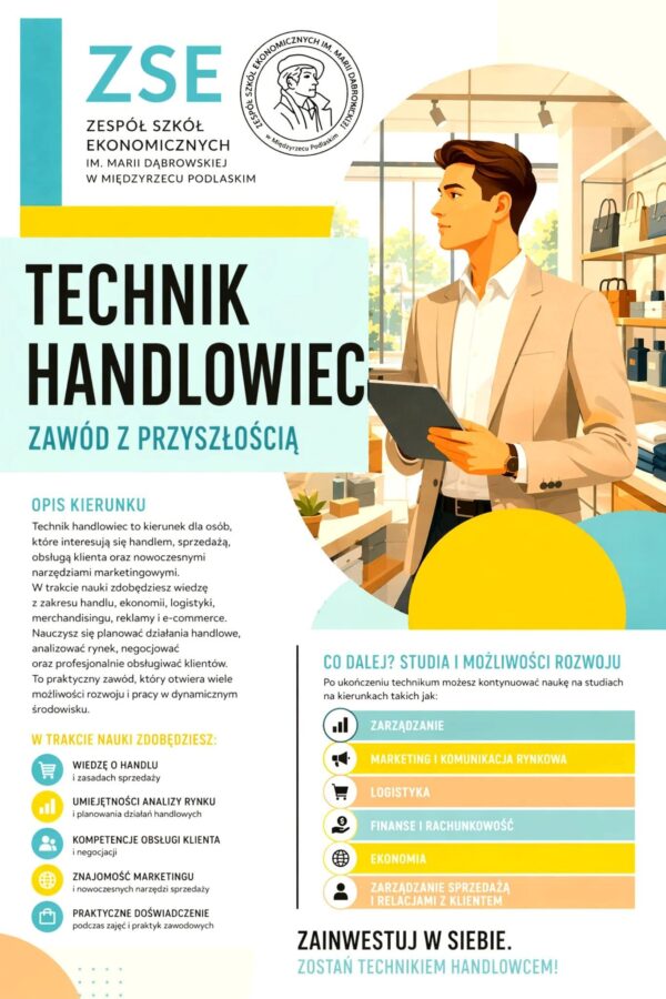 🔷🔸CZAS ZAPOZNAĆ SIĘ Z OFERTĄ KIERUNKÓW KSZTAŁCENIA W ZSE NA NOWY ROK SZKOLNY 2026/2027 🔸🔷 PROPOZYCJA NR 6 : TECHNIK EKONOMISTA Kierunek ten jest przeznaczony dla uczniów, którzy swoją przyszłość wiążą z Wiecej...
